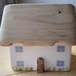 Made purely out of recycled materials the Devon Cottage Boxes are hand crafted and hand painted to order.  The outside dimensions are depth 130mm, height 150mm and length 150mm and come with wooden roofs. They can be customised in one of three colours: clotted cream yellow, scone white or candy floss pink. If you need a number or name on the house these can be added to make them your very own Devon Cottage box. There are four choices of door  – Manor door, porch, church door or lintle. Paul will paint flowers or grass on the front of the cottage to give it a homely feel.